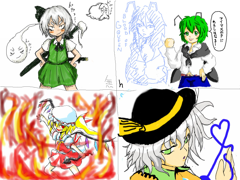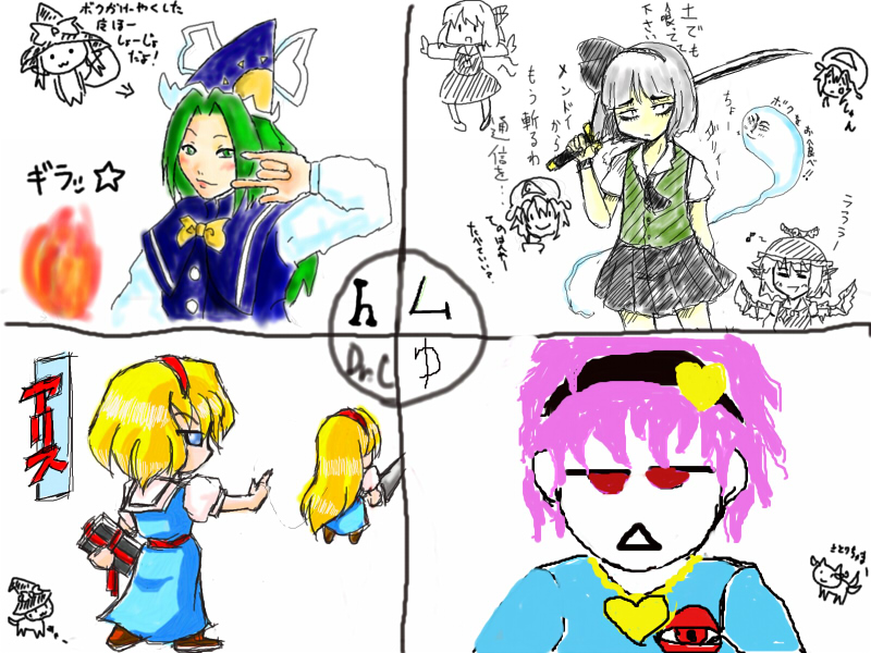 左上はシャルスさん、右上がくるしろさん、左下が私です。右下はらくがきですね。